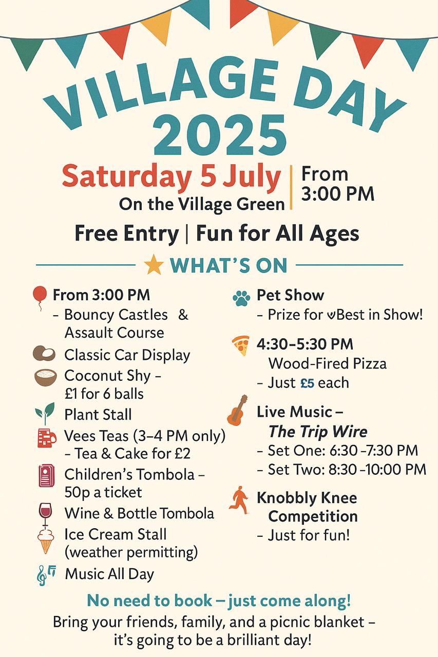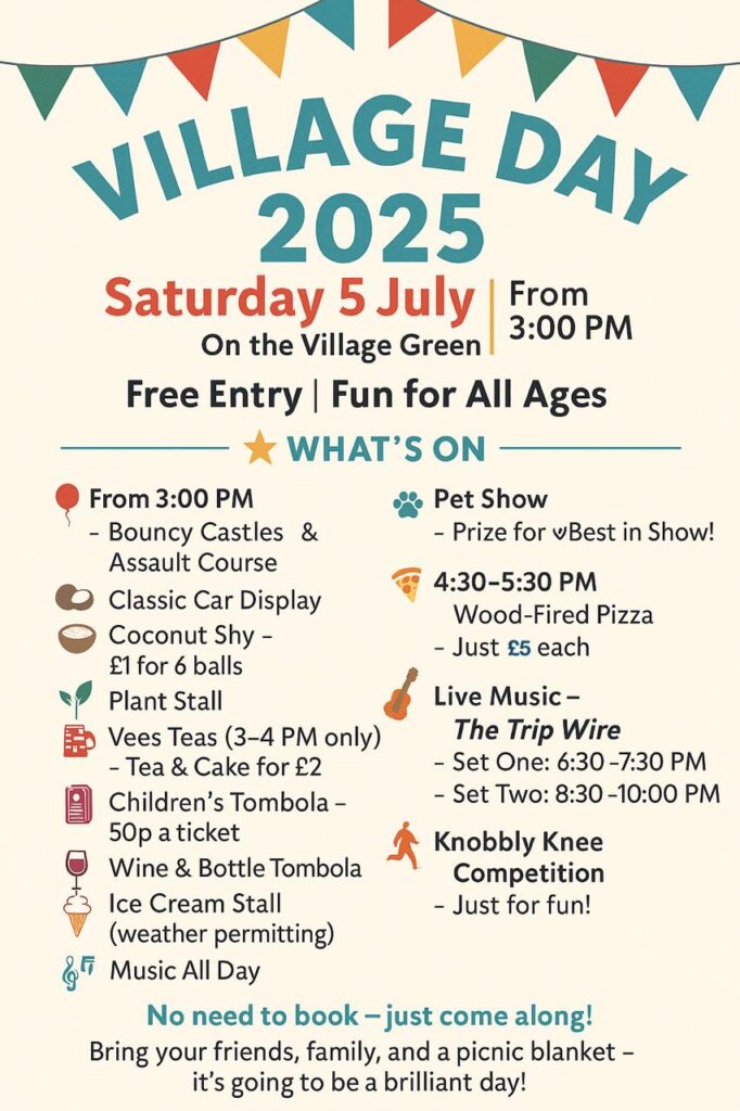 Join us on Saturday 5th July for a traditional village day full of fun, food and festivities.